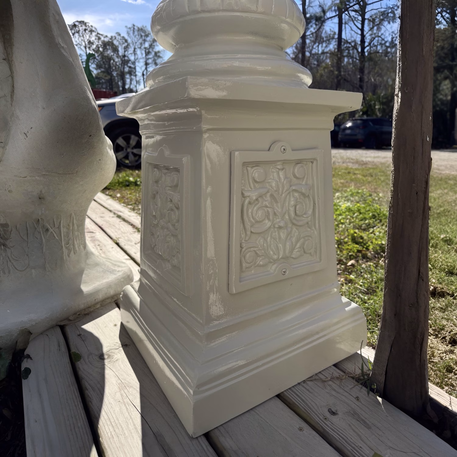 This is a custom ordered white color. We also carry this pole light in Black, however when painted in white it is a 500$ up-charge. This is due to the extra amount of work needed to finish it in white properly. Extra prep work, and extra coats of paint are required for the finish.*