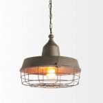 inspired pendant light that features a metallic shade. An antiqued brass toned,