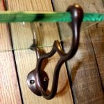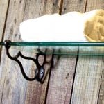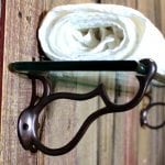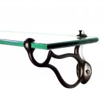 This item features brackets with a bronze finish and a glass shelf with beveled edges.