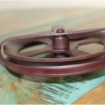 Larger brass pulley with bronze painted finish.