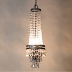 Three tiers of crystals and pendants adorn this lovely fixture.