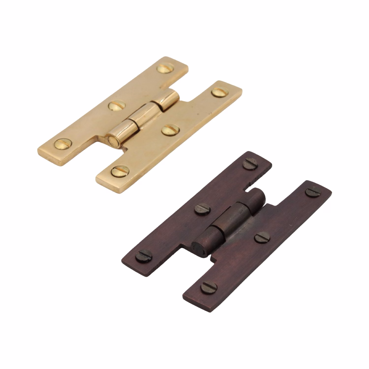 This solid brass ” H ” shaped cabinet hinge
