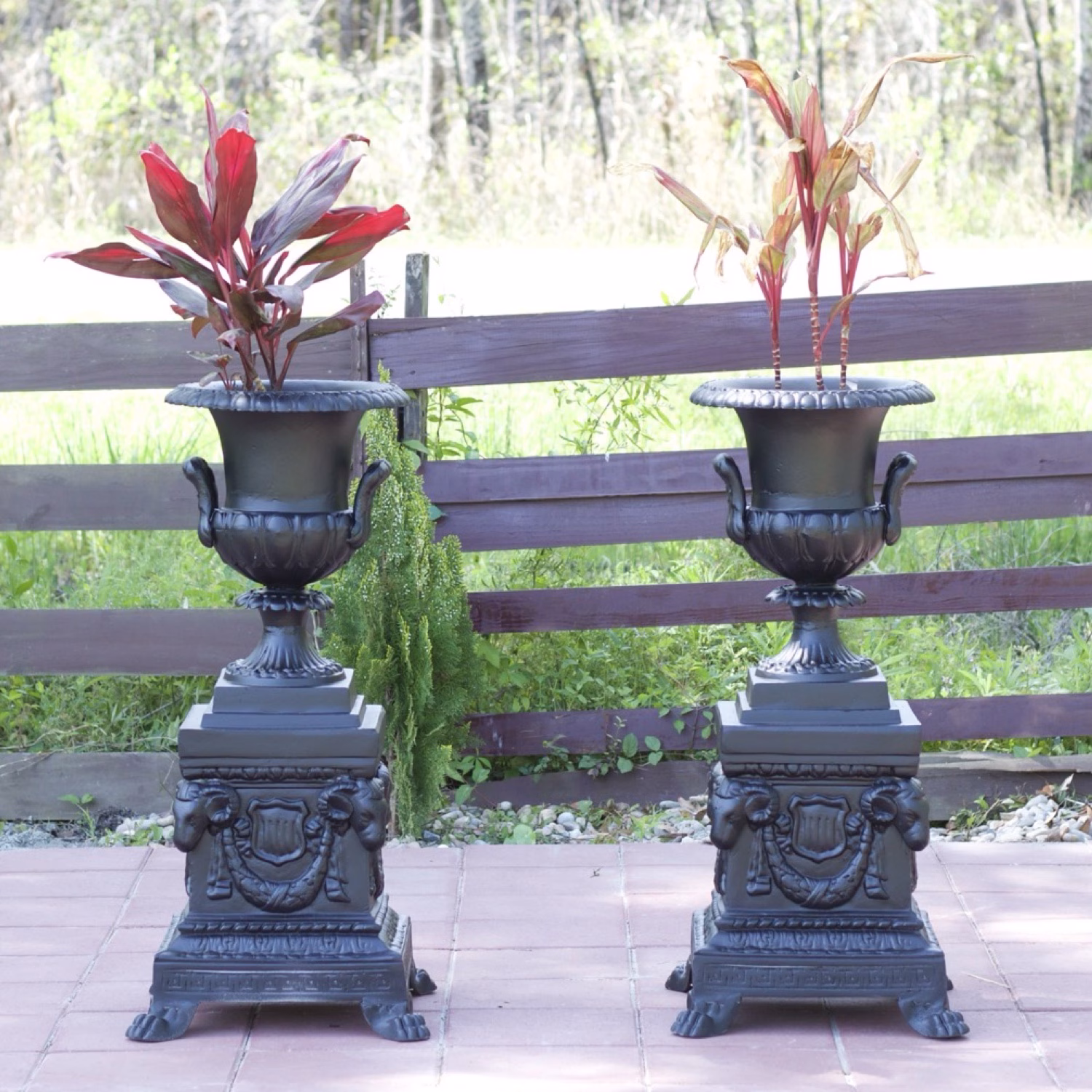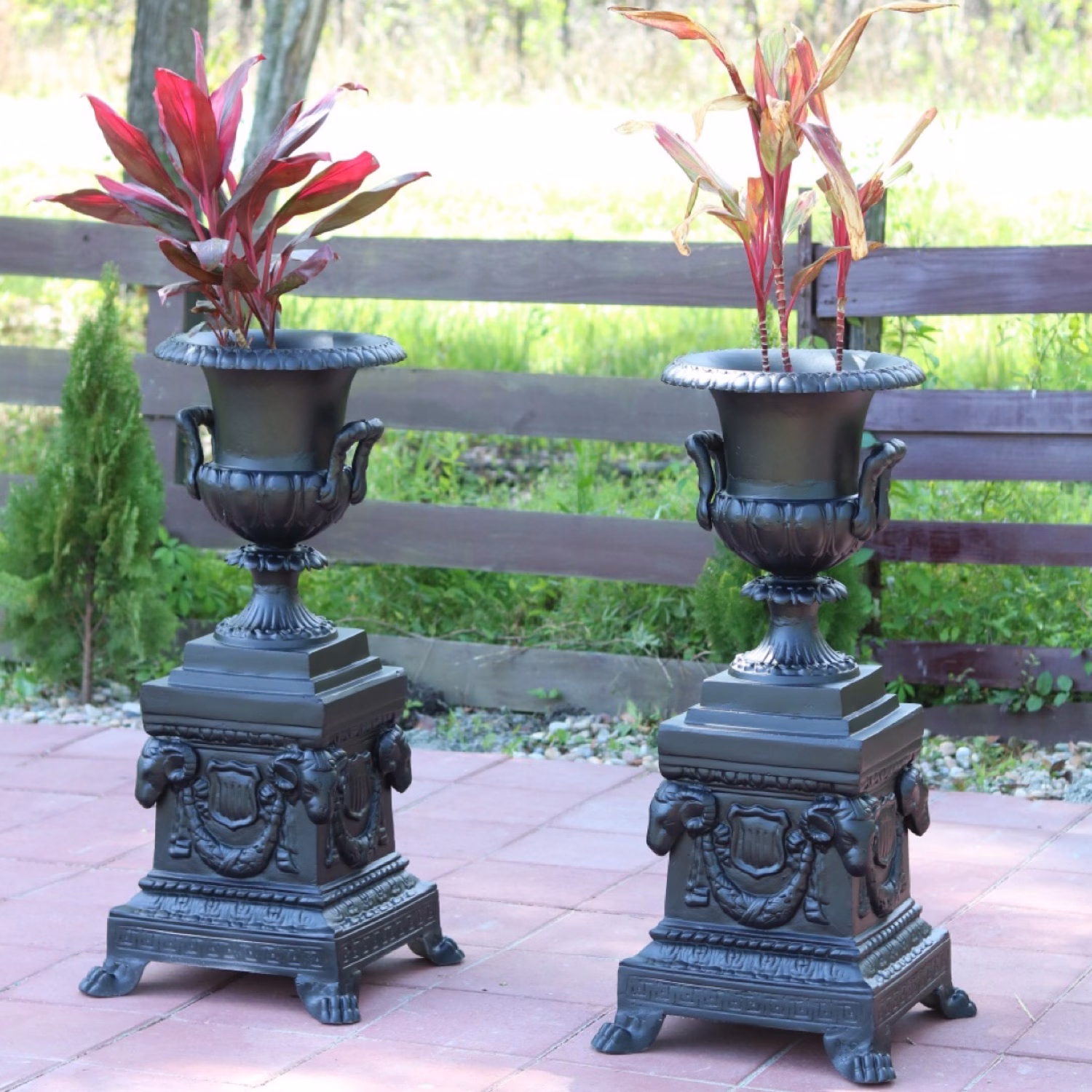 Pair of Presidential Garden Urns Ram Head Base non Rust Aluminum Victorian Style