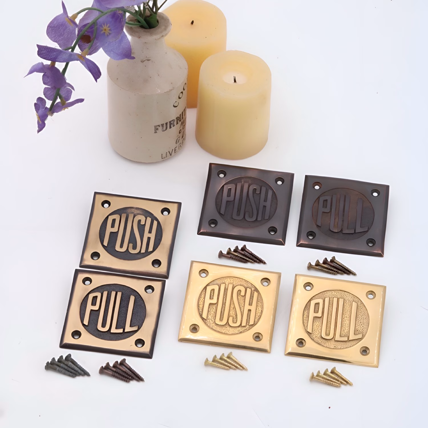 This solid cast brass push and pull set features