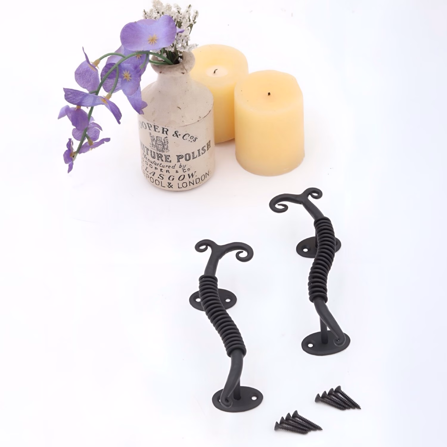 Black finish iron door or cabinet pull.