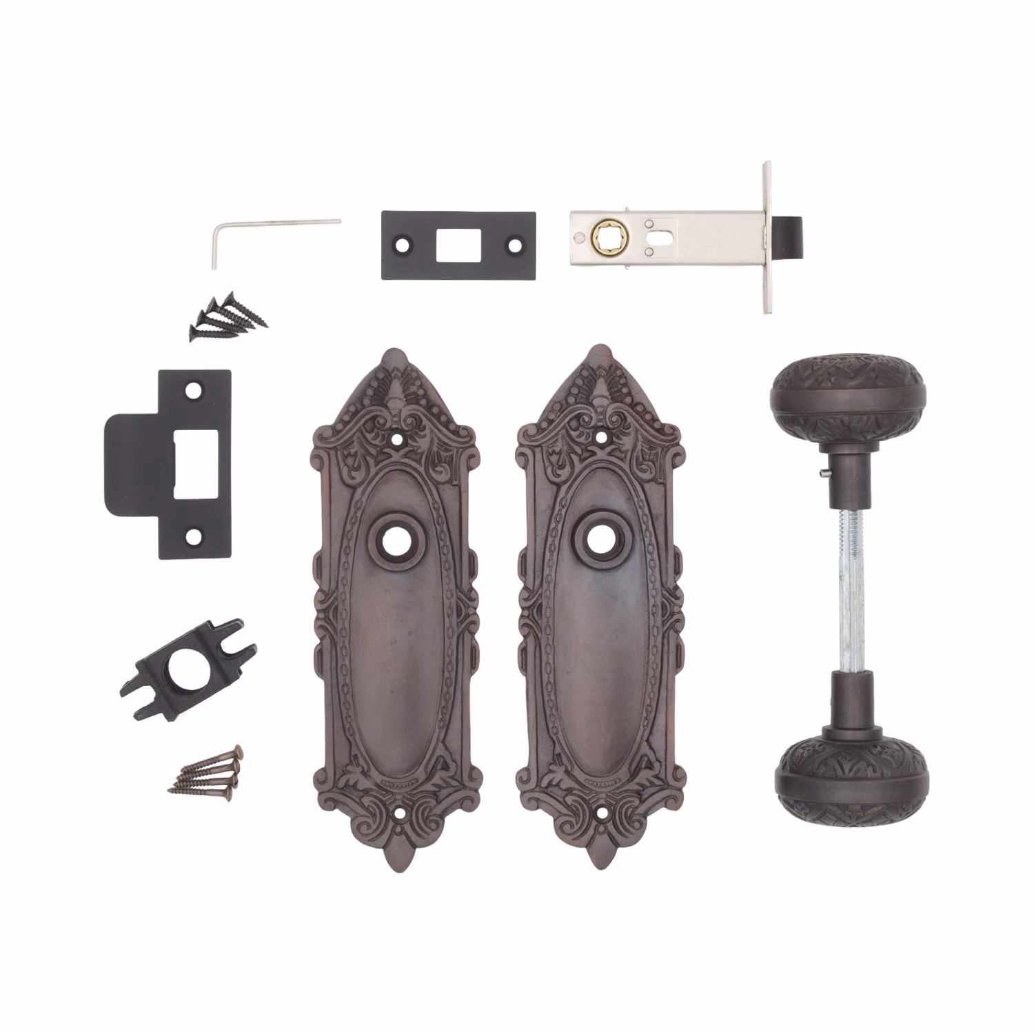 All PASSAGE Sets Come With: 2 Knobs, 2 Back Plates, Spindle, and Passage Latch.