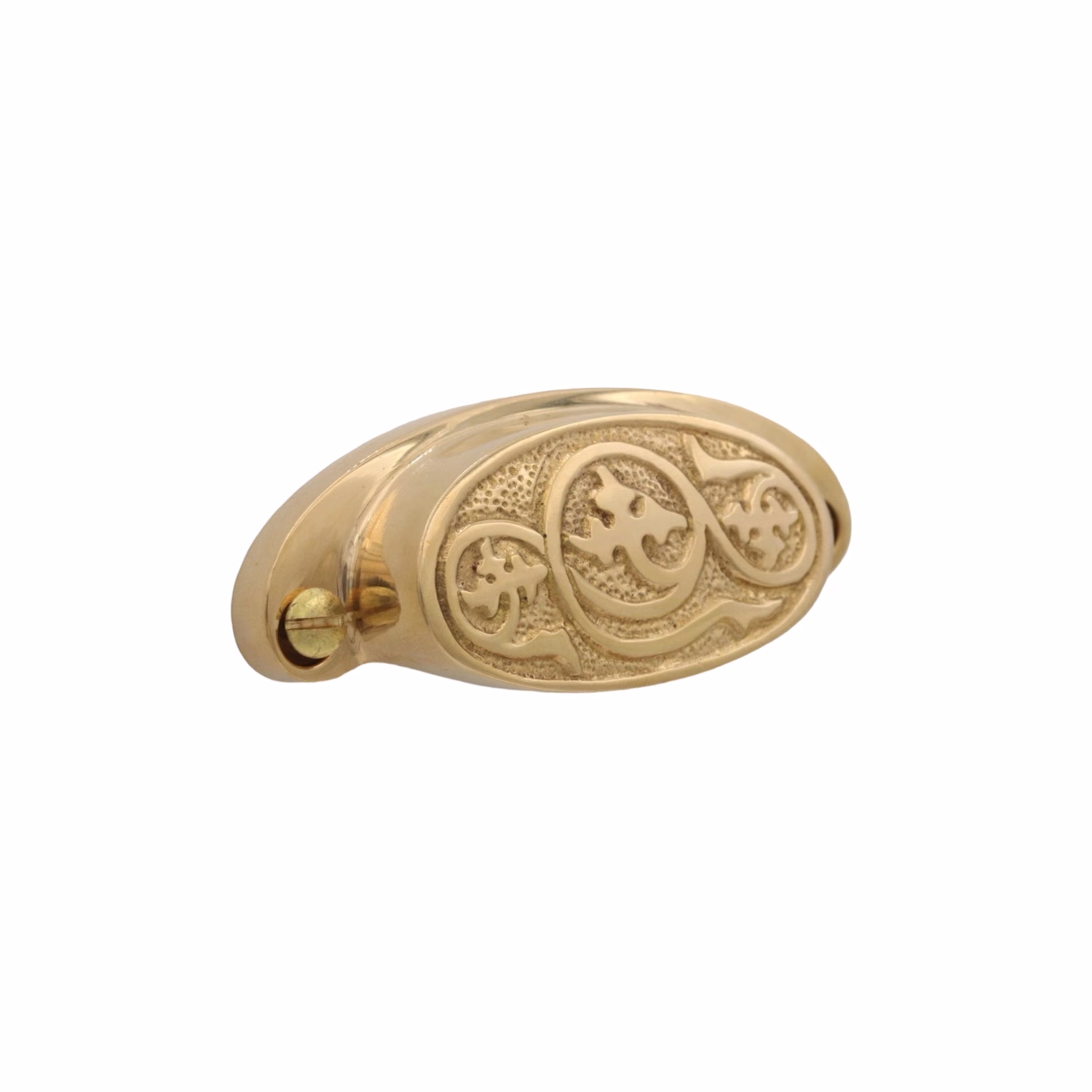 this bin pull features an ornate design