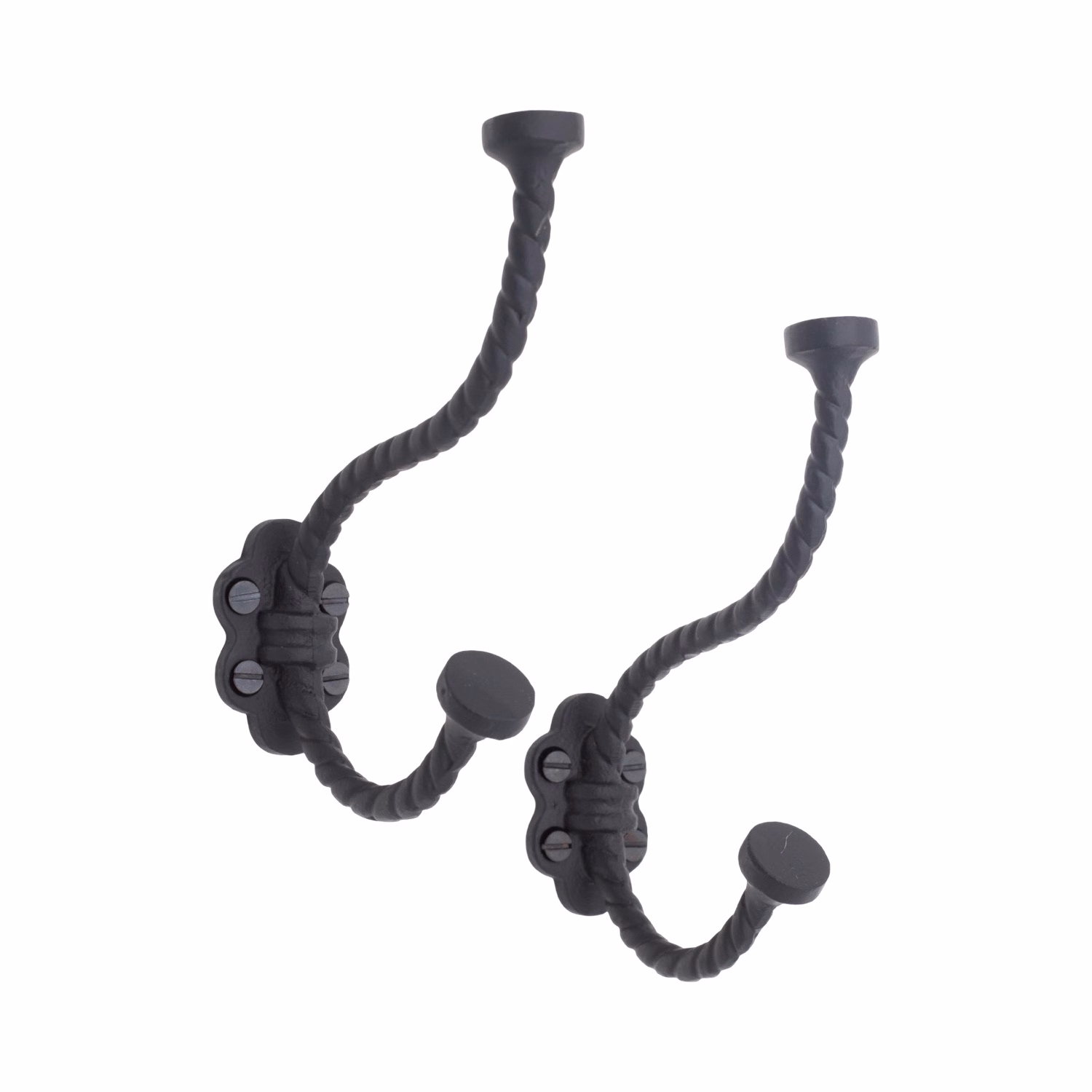 Black finish, iron, wall mounted hanger.