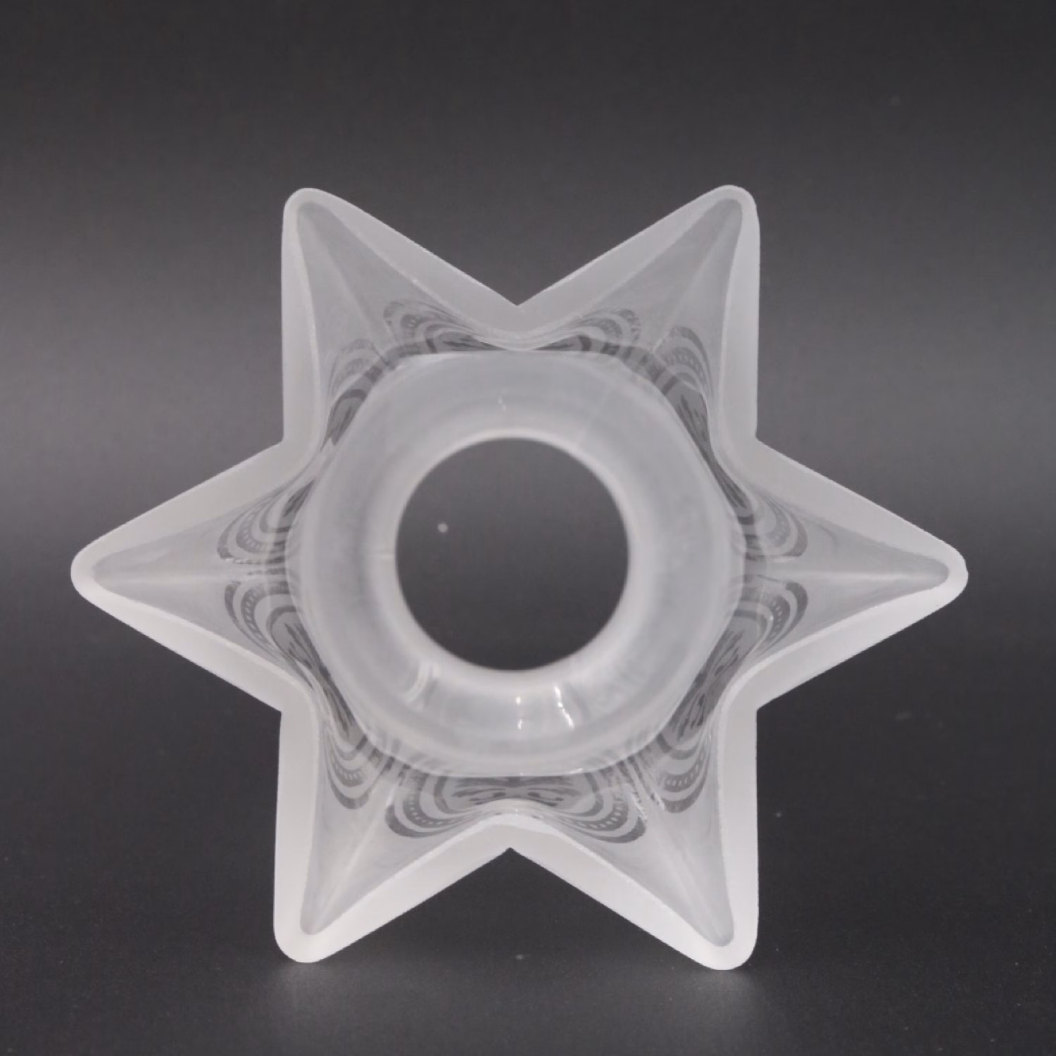 Real glass with flared sides around the bottom. Lovely new etched finish.