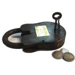 Giant padlock made from iron and brass.