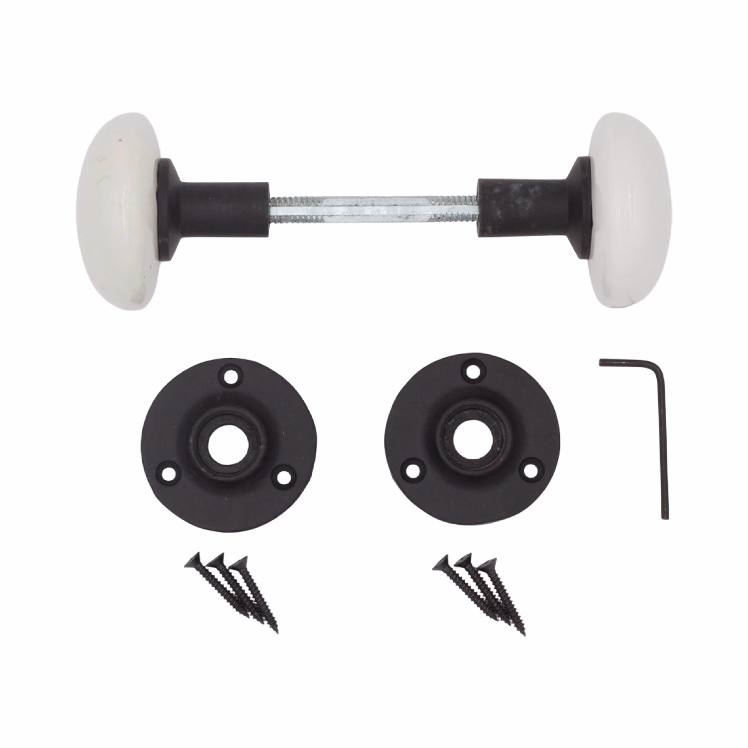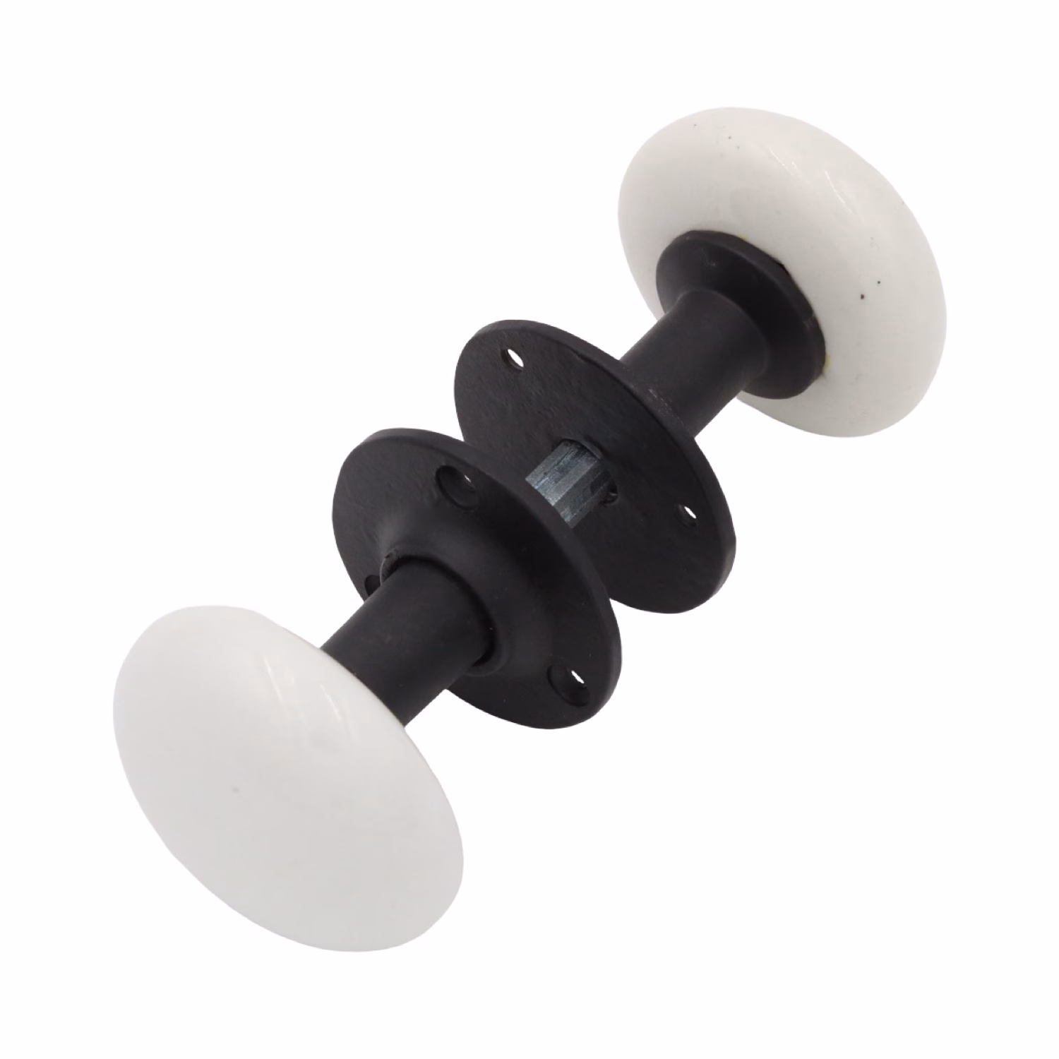 This pair of porcelain door knobs comes complete