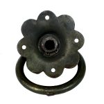 Wrought iron door latch set with wax coated finish.